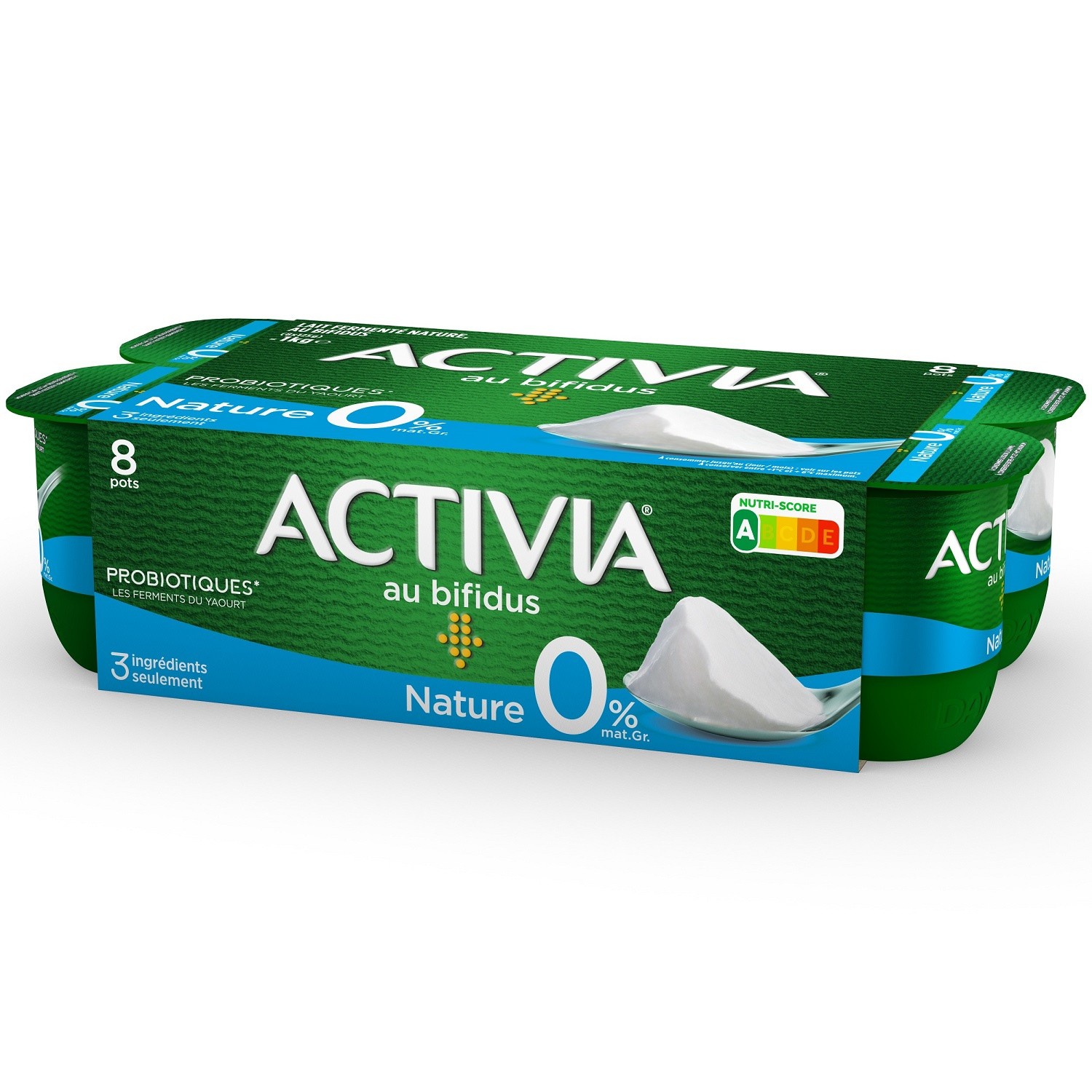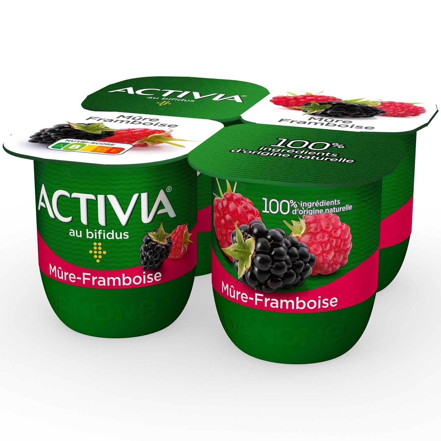 Activia. Quantité : 8 pots de 125 g Marque : Danone, ActiviaIngrédientsLAIT entier (Origine: France) fruits (8,2% en moyenne) : fraise 8,3%, mangue 8,3%, abricot...