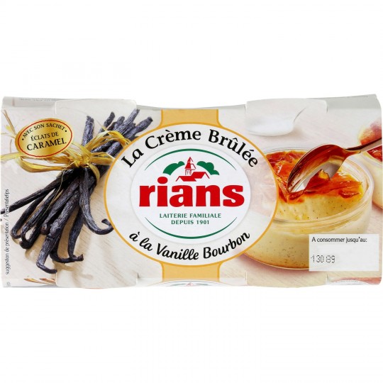 La crème brûlée à la vanille de Madagascar. Ingrédients : CRÈME 96g : Crème (Origine: France) pasteurisée (74 6%), oeufs frais (11,6%), sucre, jaunes d'oeufs...