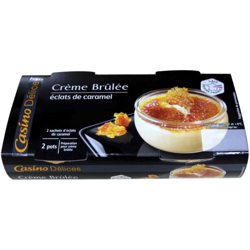 Préparation pour crème brûlée. Ingrédients : _Crème_ pasteurisée origine France 55,7% - _oeufs_ frais pasteurisés 12% - sucre - _lait_ écrémé pasteurisé origine France 9,7%...