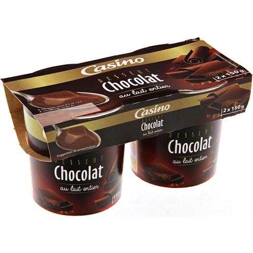 Dessert lacté au chocolat et à la menthe. Ingrédients : _Lait_ entier, _crème_, sucre, chocolat 4,2 % (pâte de cacao, sucre, cacao maigre en poudre),...