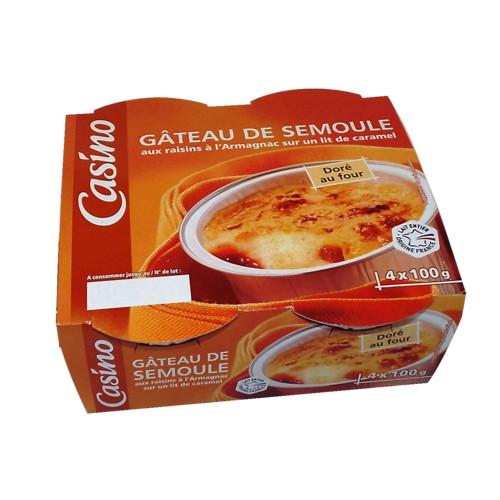 Gâteau de semoule aux oeufs extra-frais et aux raisins à l'Armagnac sur un lit de caramel. Ingrédients : _Lait_ entier origine France 65,9 % -...