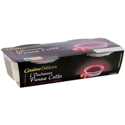 Dessert à la crème fraîche et au coulis de framboise (20,8%). Ingrédients : _crème_ fraîche 31,7% - eau - sirop de glucose - framboises 10,4%...