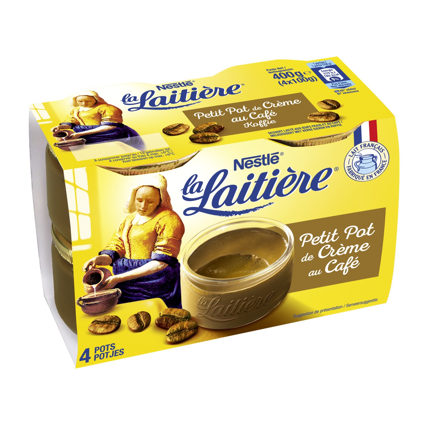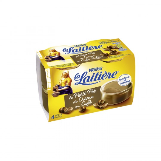 Petit Pot de Crème au Café. Ingrédients : _Lait_ entier (51,8%) , sucre, _œufs_ frais (13,4%), blancs d'_oeufs_, crème (_lait_) (13,2%), sirop de glucose, poudre...
