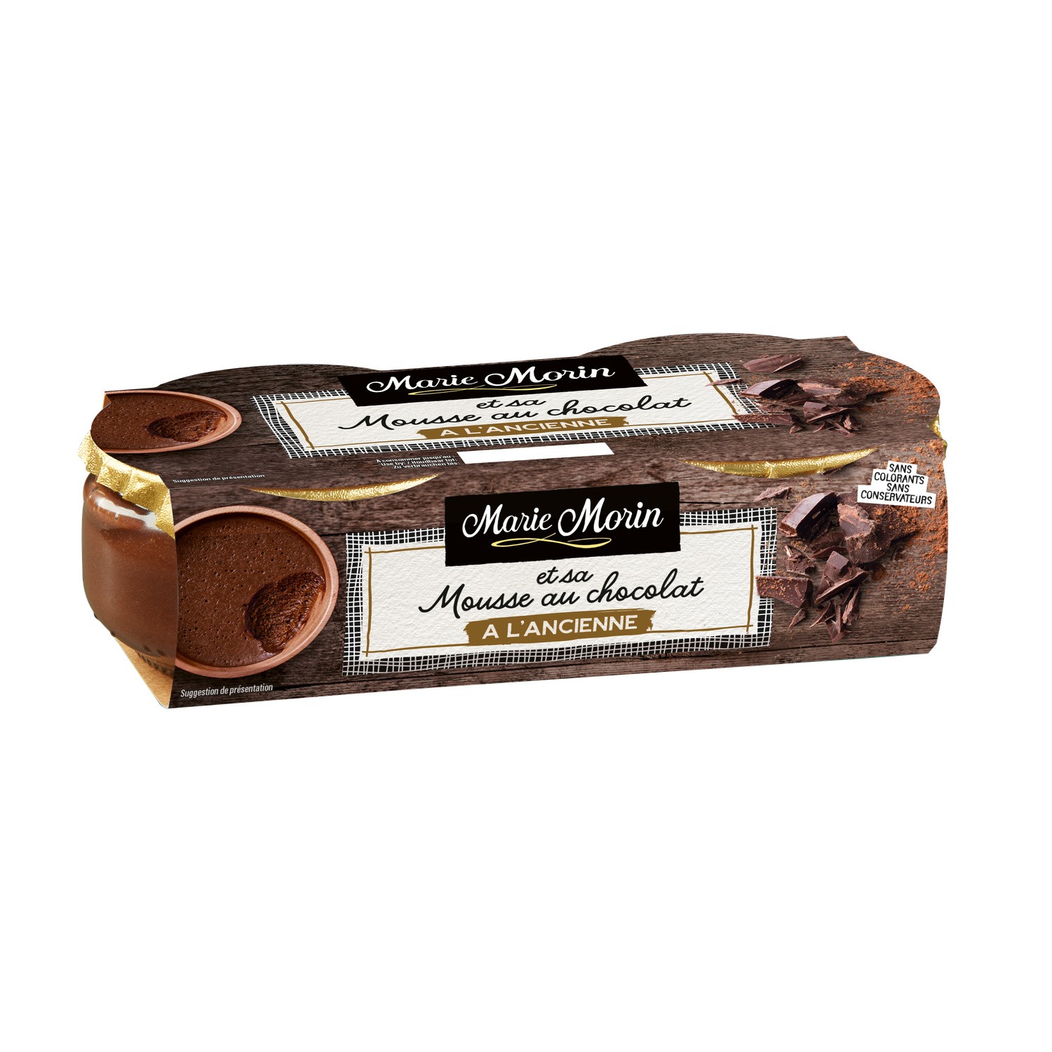 Mousse au chocolat - 2 Mousses au Chocolat à l'Ancienne. Ingrédients : Chocolat pur beurre de cacao 42%, blancs d'_œufs_, jaunes d’_œufs_, _beurre_ salé. Quantité...