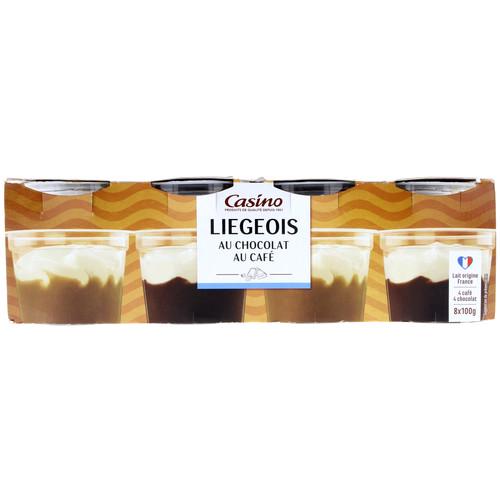 Dessert lacté type liégeois au chocolat ou au café. Ingrédients : Au chocolat : _lait_ partiellement écrémé 65,6% - _crème_ légère à 26% de matières...