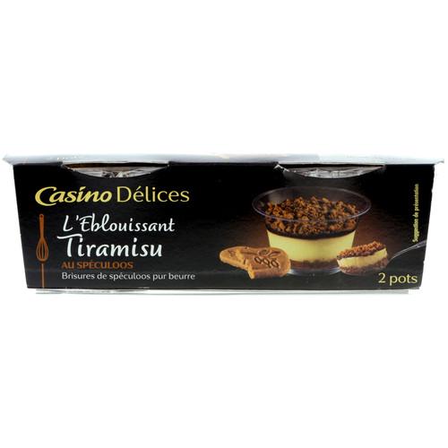 Dessert à base de préparation au mascarpone aromatisée (61,5%), biscuits spéculoos (23%), sauce (15%) au café et saupoudré de cacao. Ingrédients : Eau - spéculoos...