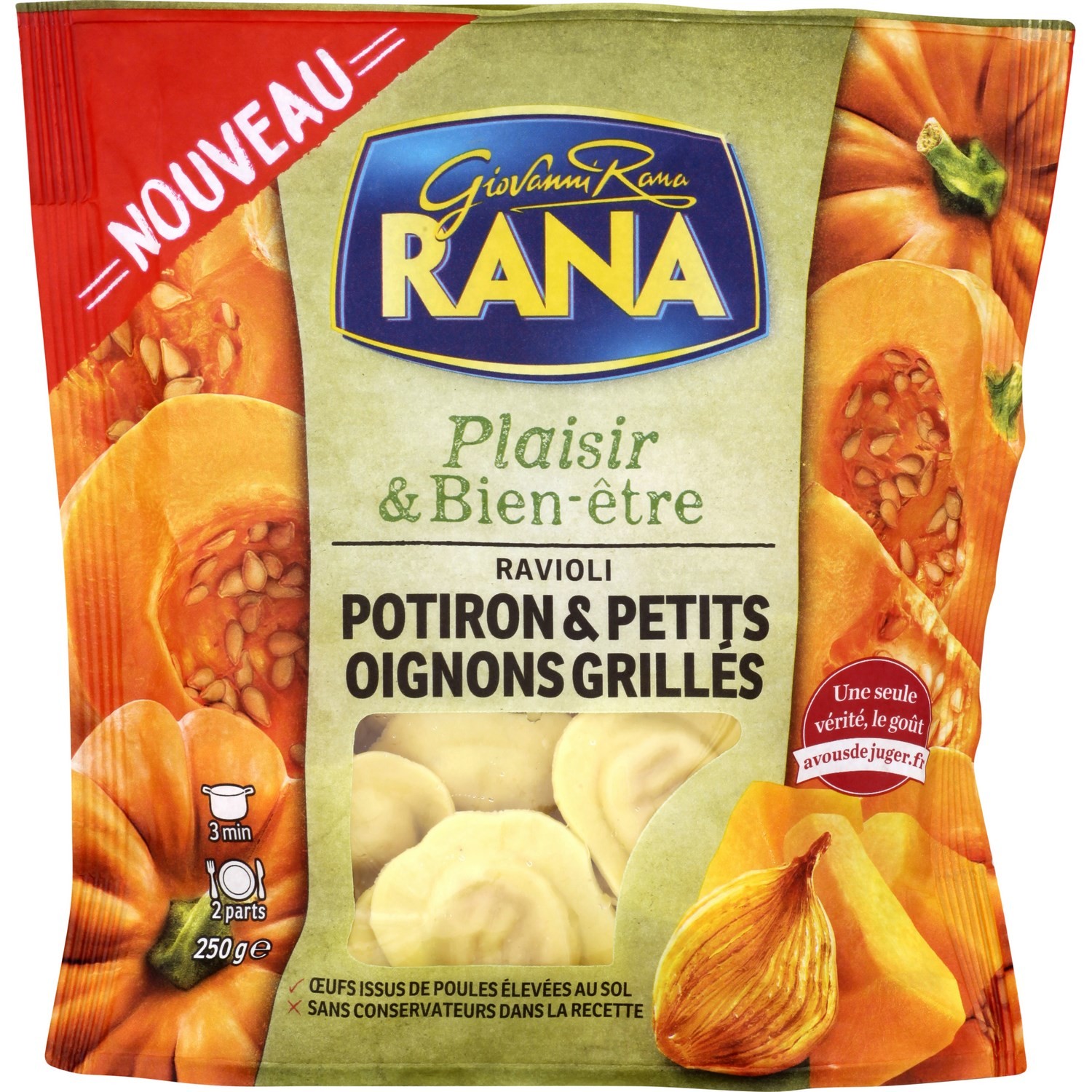 Ravioli potiron et petits oignons grillés. Ingrédients : Farce 52%: purée de potiron 41%, crème, fibres végétales ( contiennent blé), fromage maigre, fromage Grana Padano,...