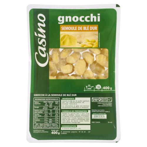 Gnocchi à la semoule de blé dur. Ingrédients : Semoule de _blé_ dur de qualité supérieure 46% - eau - huile de tournesol - sel....