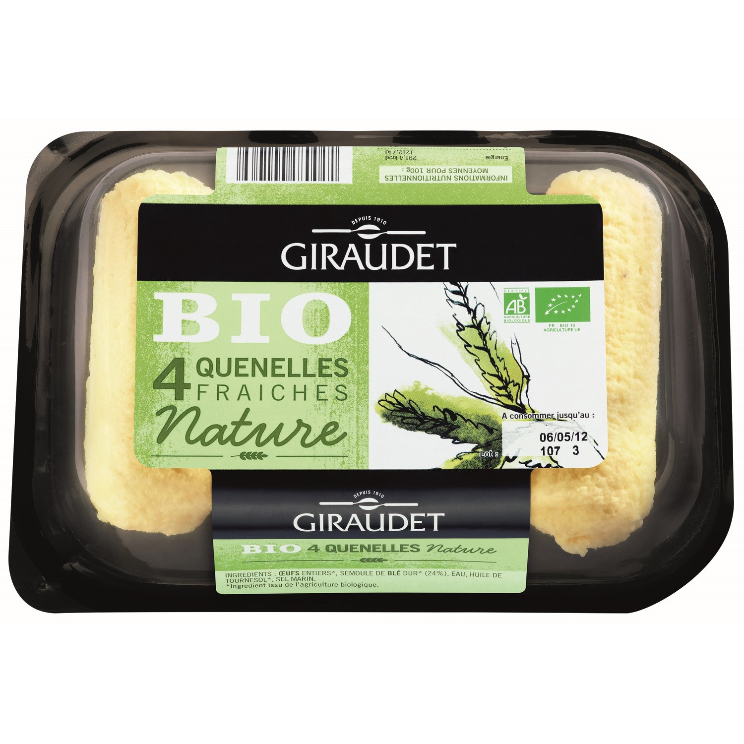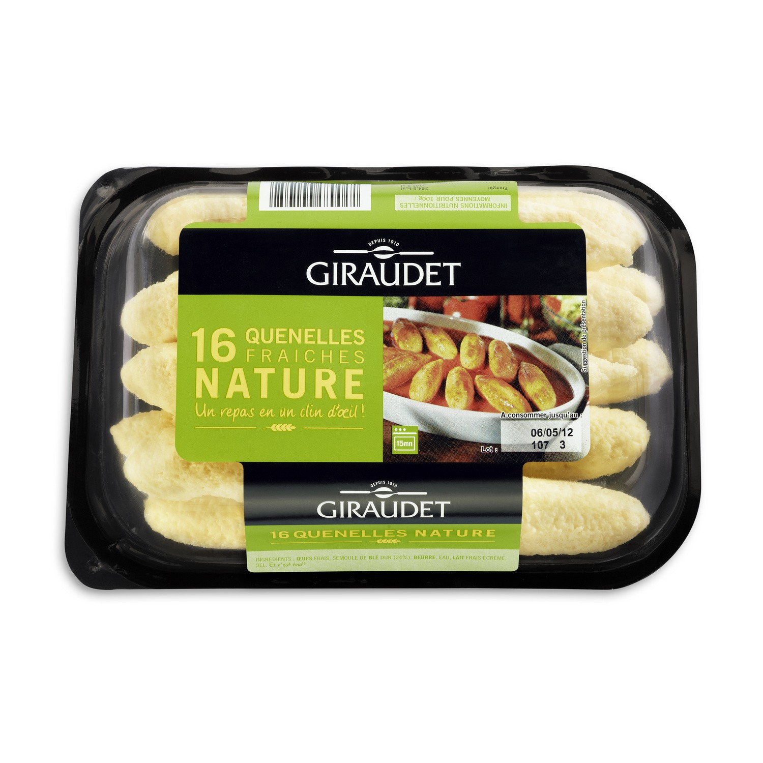 quenelles. Ingrédients : Œufs frais, semoule de blé dur (24%), beurre, eau, lait frais écrémé, sel Quantité : 320 g Marque : Giraudet