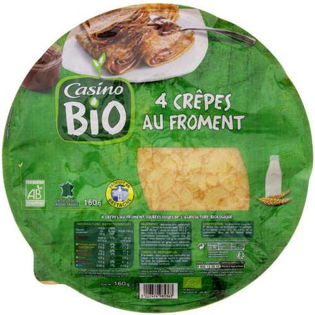 4 Crêpes au froment sucrées issues de l'agriculture biologique. Ingrédients : _lait_ entier* origine france - farine de _froment_ (_blé_)* origine france 25 % -...