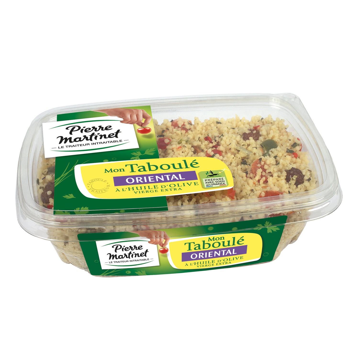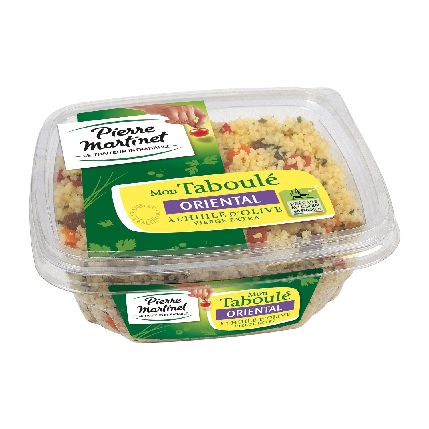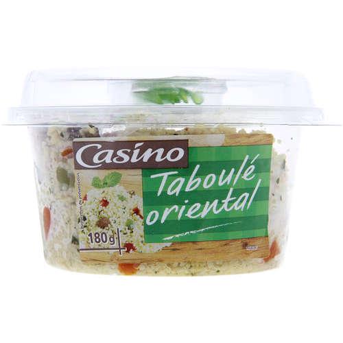 Taboulet oriental. Ingrédients : semoule de blé dur réhydratée 58% (semoule de blé dur, eau), légumes (tomates, poivrons, oignons), jus de citron à base de...