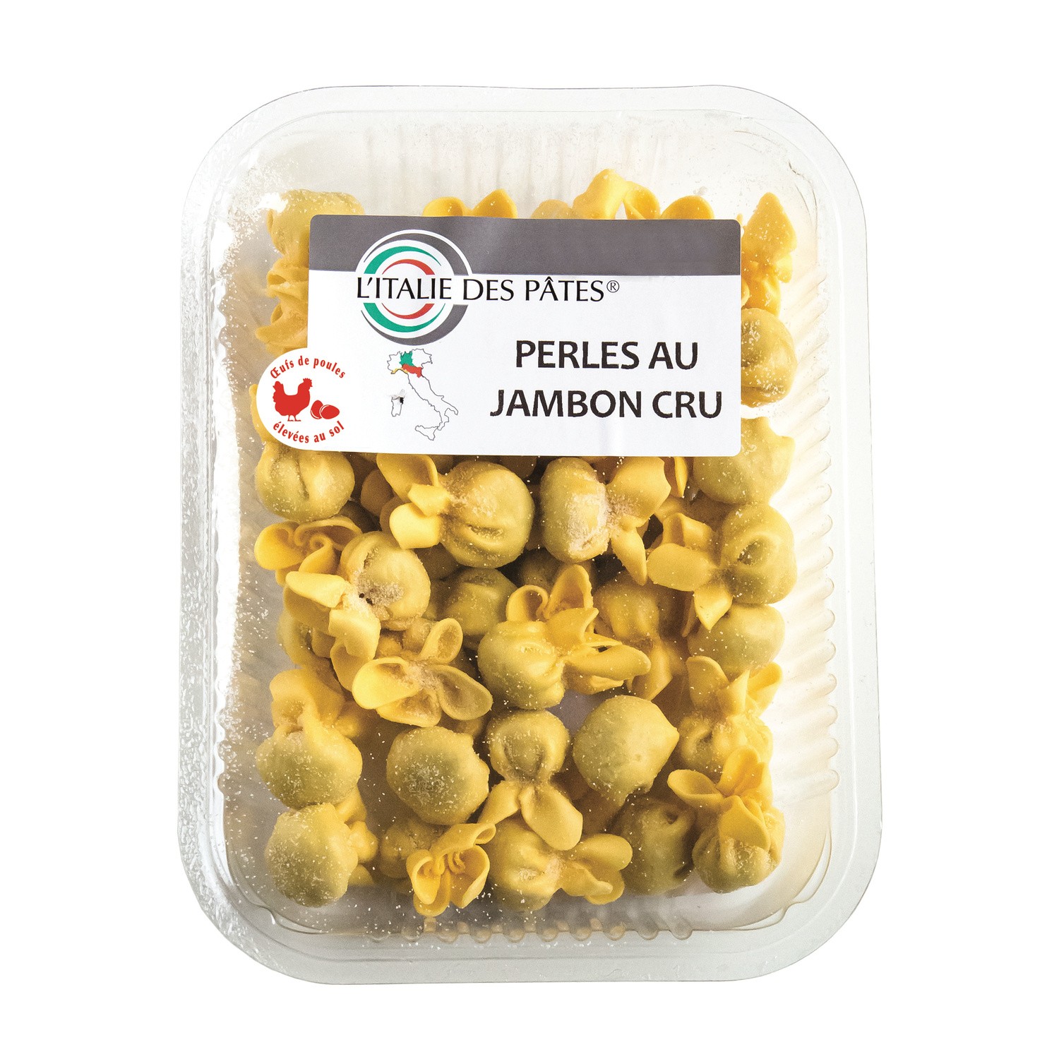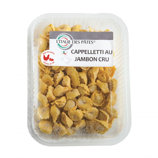 Pâtes fraîches aux oeufs, à la farine de blé tendre et à la semoule de blé dur, farcies au jambon cru. Ingrédients : farine de...