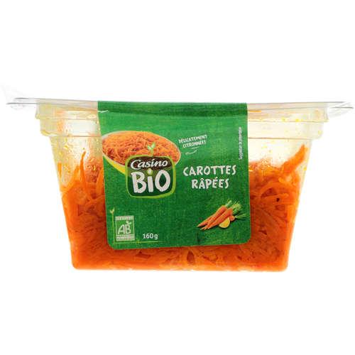 Carottes râpées dans une vinaigrette citronnée allégée en matières grasses, issues de l'agriculture biologique. Ingrédients : Carottes râpées* 83,5 % - vinaigrette allégée en matières...