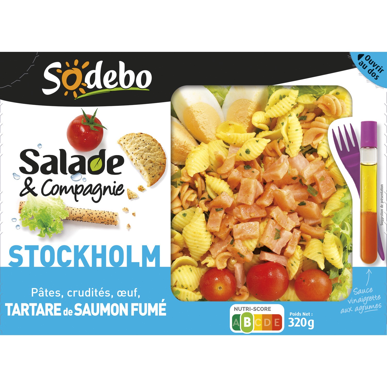 Salade & Compagnie - Stockholm. Ingrédients : => Conchiglie et fusilli cuits 41% (eau, semoule de blé dur, œuf, sel, épices, piment doux), œuf 17%,...