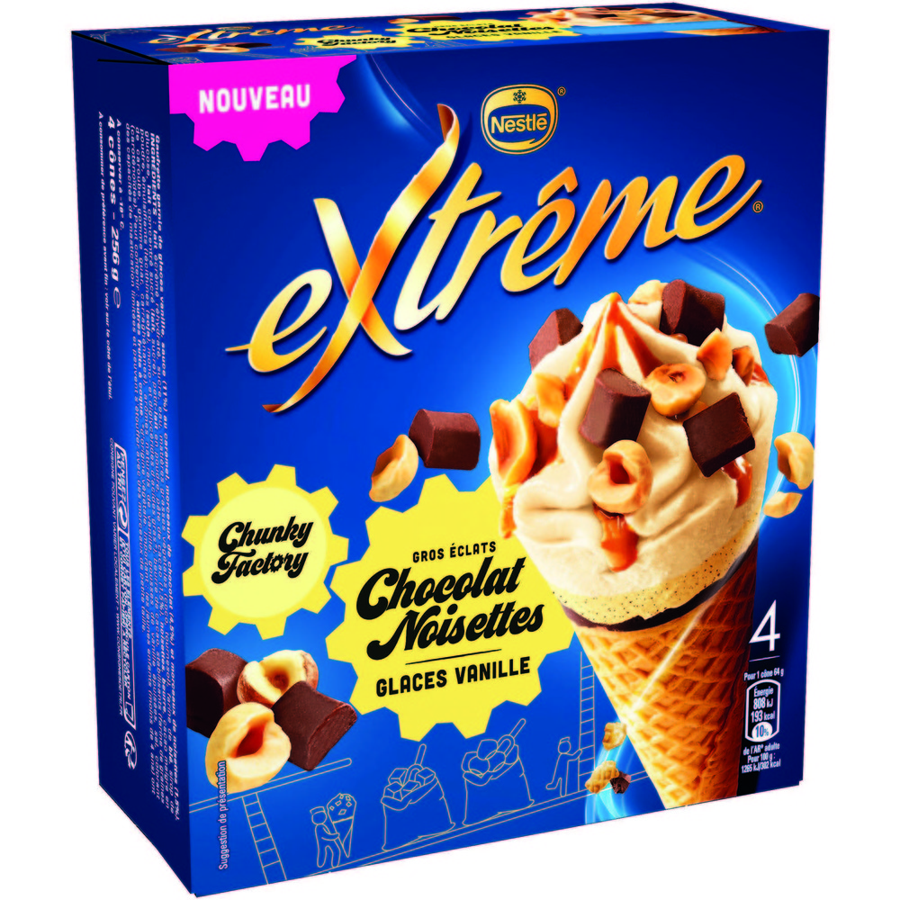 Extrême vanille gros éclats de chocolat et noisettes. Marque : Nestlé