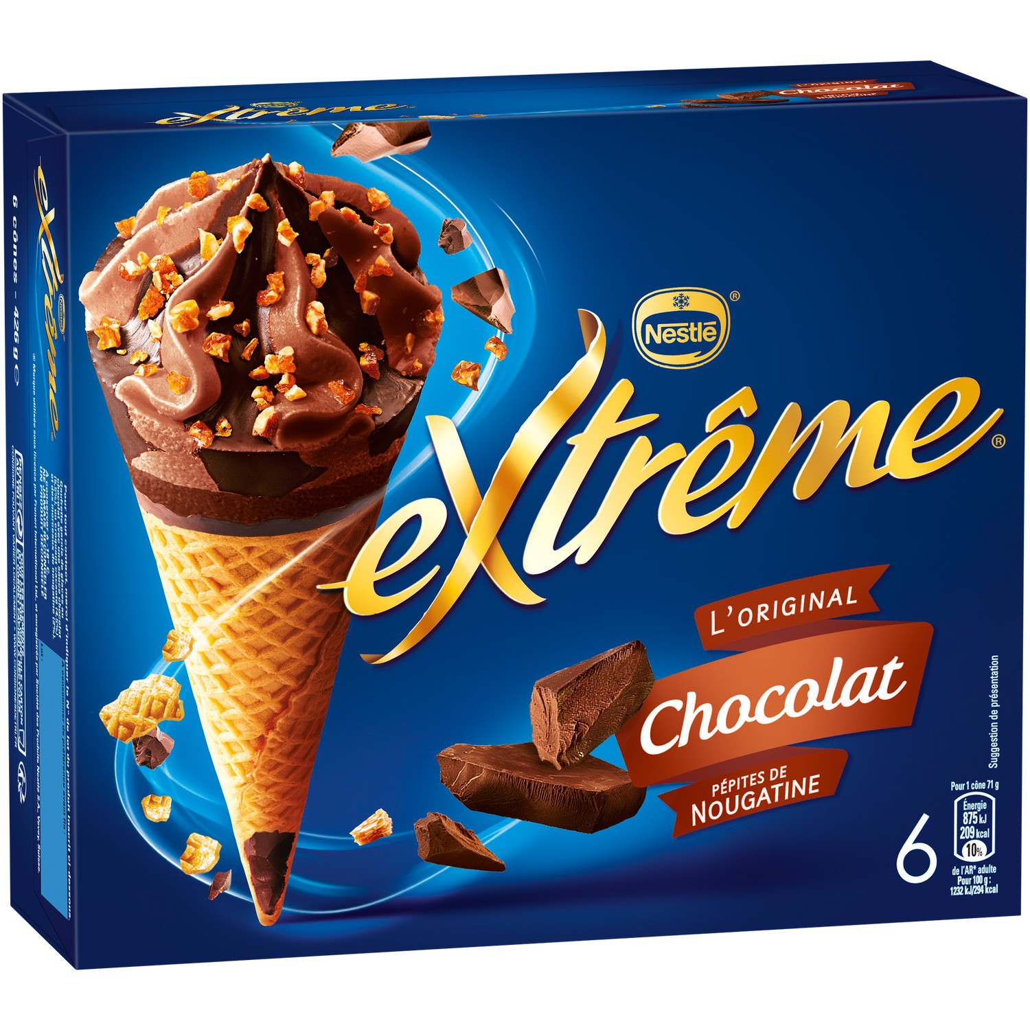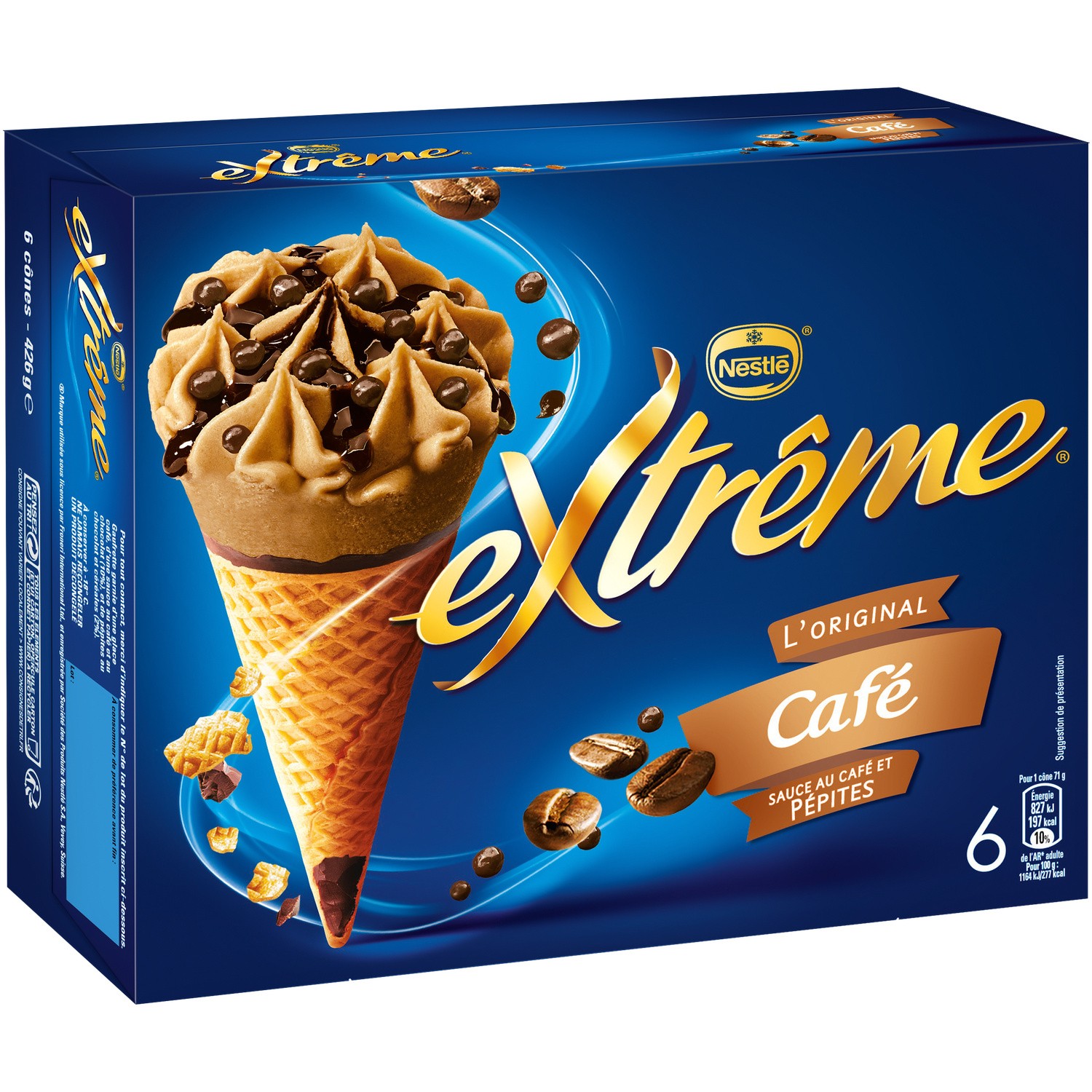 la boite de 6 cônes - 426 gIngrédientsIngrédients : LAIT écrémé réhydraté, sucre, eau, graisses et huiles végétales (noix de coco, tournesol), sirop de glucose,...