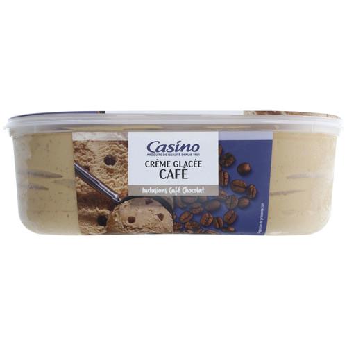 Crème glacée au café (94%) avec des inclusions au café enrobées de chocolat noir (6%), surgelée. Ingrédients : _lait_ entier - eau - _crème_ -...