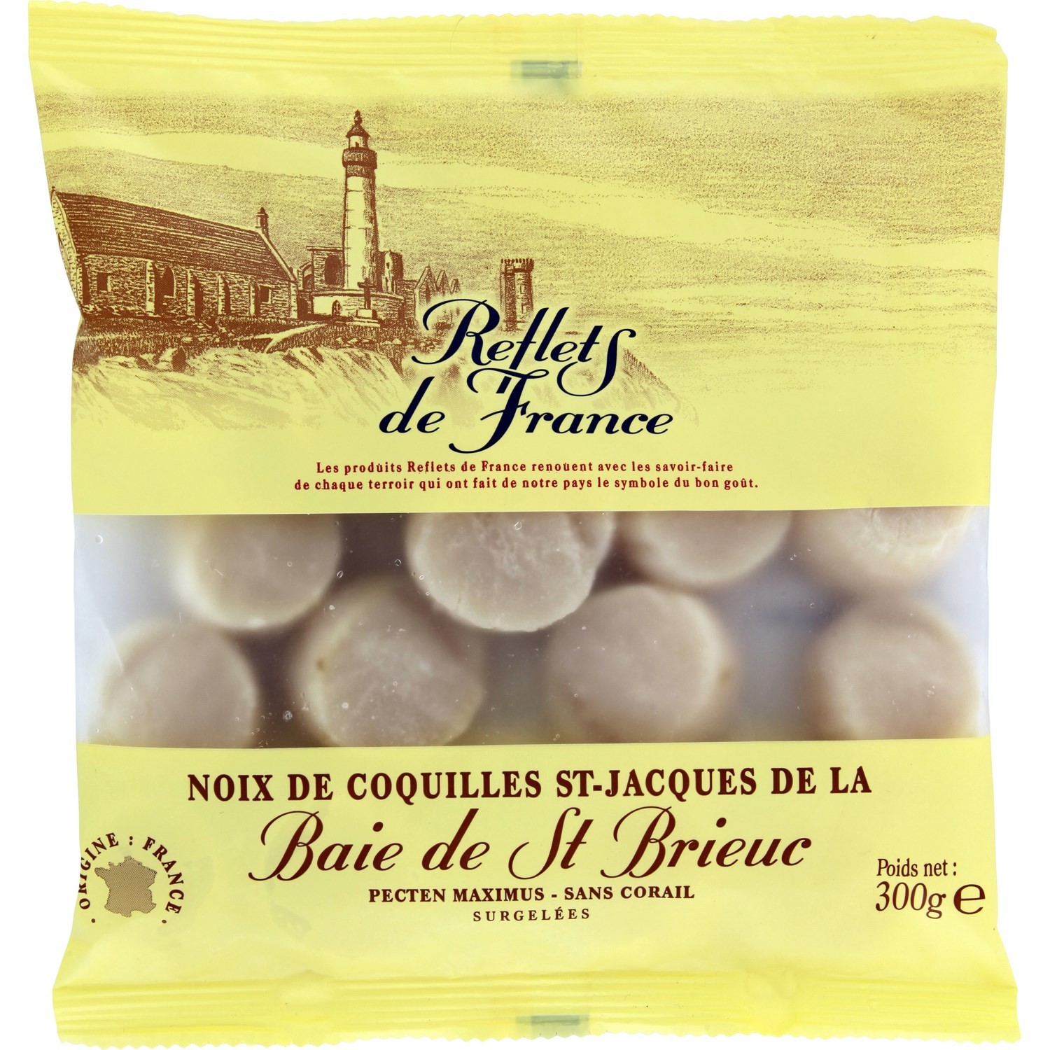 Noix de Coquilles Saint-Jacques de la Baie de Saint-Brieuc (pecten maximus) sans corail - surgelées. Ingrédients : _Noix de Coquilles Saint-Jacques_ (Pecten maximus) de la...