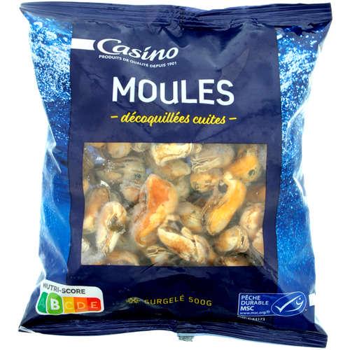 Moules du pacifique cuites décoquillées surgelées. Ingrédients : _moules_ du pacifique (mytilus chilensis) cuites décoquillées, élevées au chili Quantité : 500 g Marque : Casino...