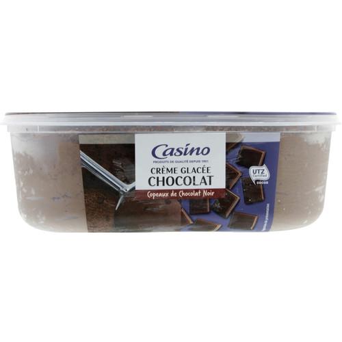 Crème glacée au chocolat noir (94%) avec des copeaux de chocolat noir (6%), surgelée. Ingrédients : Eau - _crème_ - _lait_ écrémé réhydraté - sucre...