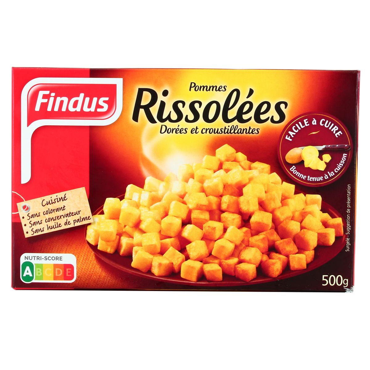 Pommes Rissolées. Ingrédients : Pommes de terre 94%, huile de colza 6%, dextrose. Sans ajout de sel(l). (l) Conformément à la réglementation. Quantité : 500...
