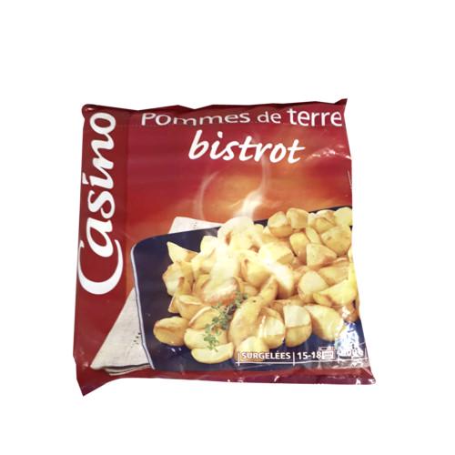 Pommes de terre en morceaux enrobées, préfrites et surgelées. Ingrédients : Pommes de terre 96% - huile de tournesol 2,7% - amidon transformé de pomme...