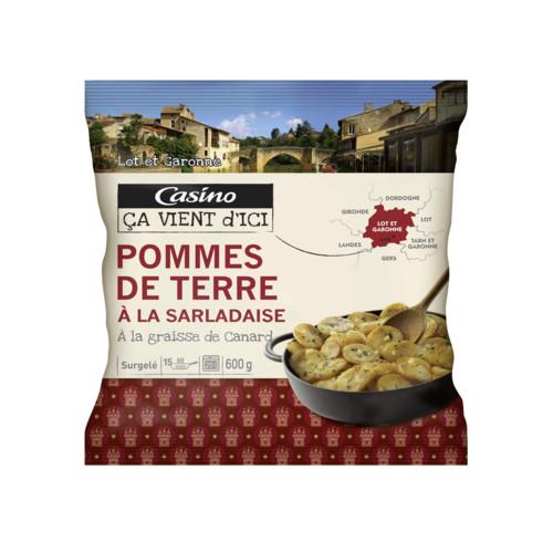 Pommes de terre préfrites en rondelles enrobées à la graisse de canard, à l'ail, aromatisées et au persil, surgelées. Ingrédients : Pommes de terre préfrites...