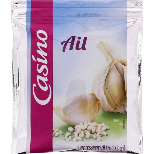 Ail en cubes surgelé. Ingrédients : 100% ail Quantité : 100 g Marque : Casino