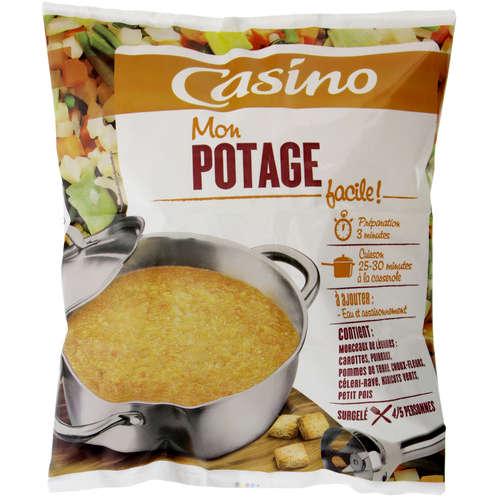 Mélange de légumes pour potage surgelés. Ingrédients : Carottes en cubes 28% minimum - poireaux coupés 16% minimum - pommes de terre en cubes 12%...