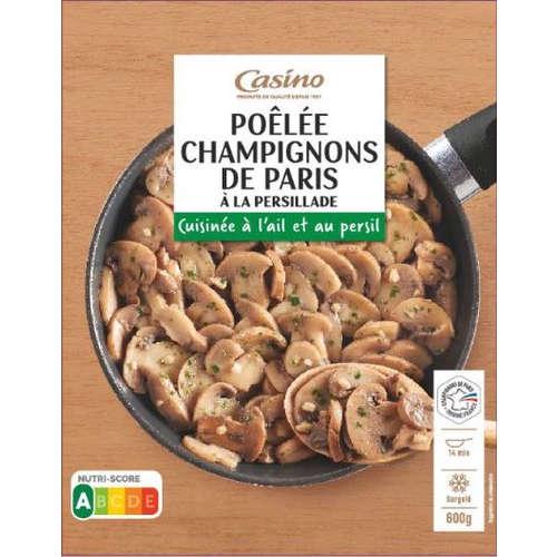 Champignons de Paris en persillade - surgelés. Ingrédients : Champignons de Paris 94% - huile de tournesol - ail 0,7% - persil 0,7% - sel...