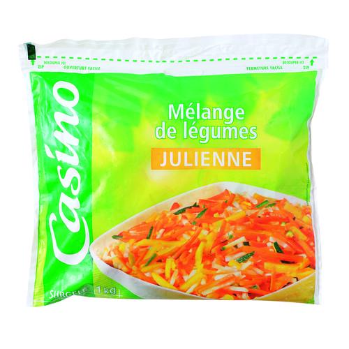 Mélange de légumes assaisonnés surgelé. Ingrédients : Brocolis en petites fleurettes 45% - petits pois doux fins 26% - haricots verts très fins 25% -...