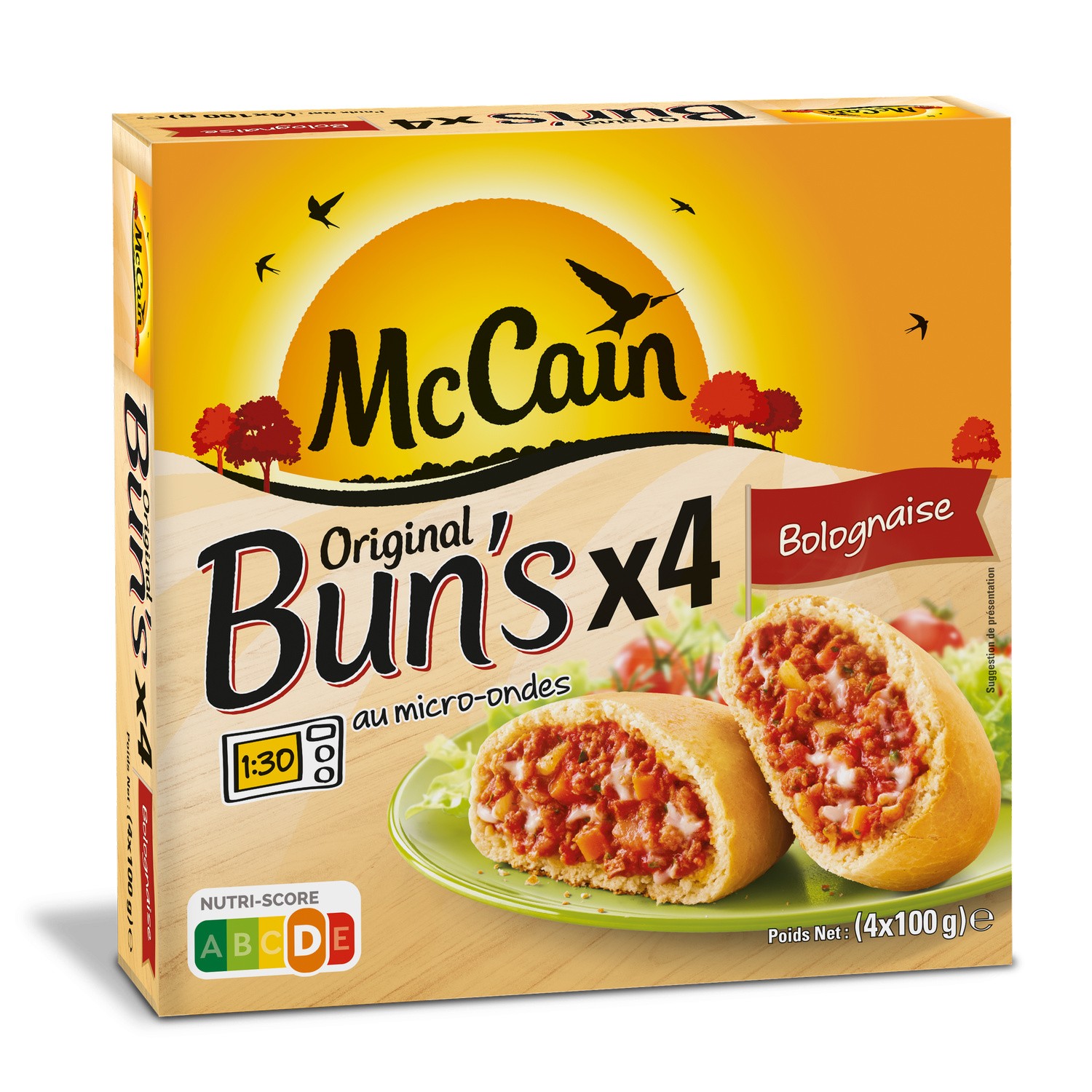 Original Bun's Bolognaise. Ingrédients : Farine de _blé_, eau, oignons (9,5 %), tomates (8,5 %), margarine (huiles de palme et de colza, sel, colorant: bêta-carotène),...