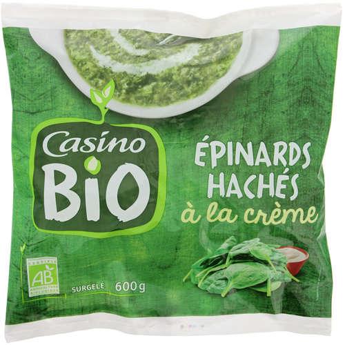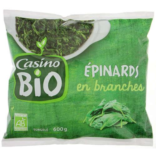 Epinards en branches issus de l'agriculture biologique surgelés. Ingrédients : 100% épinards en branches issus de l'agriculture biologique. Quantité : 600 g Marque : Casino...