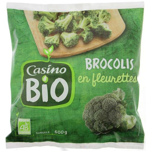Fleurettes de brocolis issues de l'agriculture biologique surgelées. Ingrédients : 100% brocolis issus de l'agriculture biologique Quantité : 600 g Marque : Casino,Casino Bio Origine...