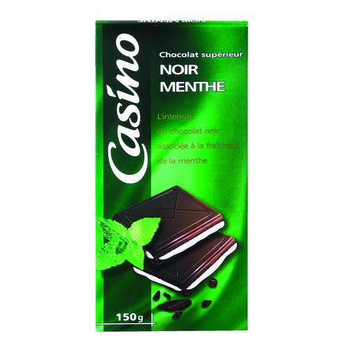 Chocolat noir supérieur avec 40% de fourrage à la crème confiseur aromatisée à la menthe.. Ingrédients : Chocolat noir 60% (sucre - pâte de cacao...