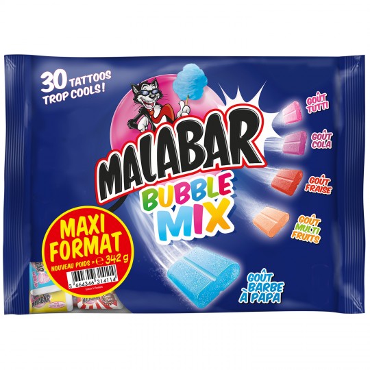Sucettes aux goûts assortis: fraise, pomme, cola et lait-fraise. Ingrédients : Ingrédients (pour les parfums fruits): sucre, sirop de glucose, purée de fruits (pomme, cerise,...