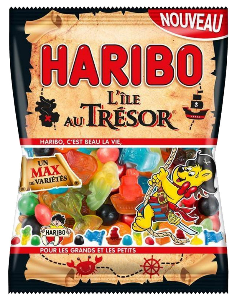 Haribo polka. Ingrédients : sirop de glucose; sucre; sirop de sucre mélasé, ULUNI, bite de blé; dextrose; gélatine; amidon; extrait de réglisse; maltodextrine; graisse de...