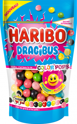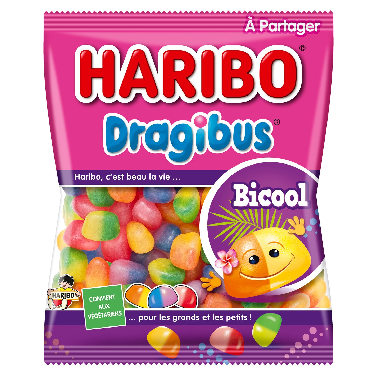 Dragibus Soft. Ingrédients : Sirop de glucose, sucre, amidon, dextrose, acidifiants : acide citrique, acide malique, correcteurs d'acidité : citrates de sodium, malates de sodium,...