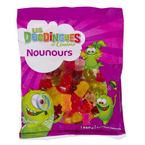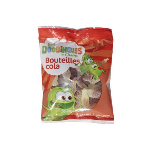Confiserie gélifiée aromatisée. Ingrédients : Sirop de glucose - sucre - eau - gélatine de porc - acidifiants : acide citrique, acide lactique - amidon...