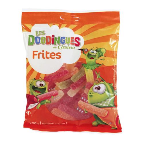 Confiserie gélifiée fantaisie. Ingrédients : Sucre, sirop de glucose, gélatine, acidifiant : acide citrique, arôme, colorants : curcumine, carmins, carotènes végétaux. Quantité : 400 g...