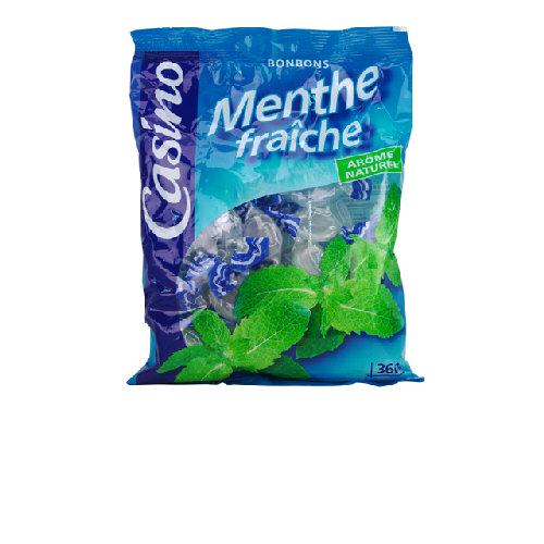 Bonbons à l'arôme naturel de menthe. Ingrédients : Sirop de glucose (contient _sulfites_) - sucre - arôme naturel de menthe. Traces de _fruits à coque_...