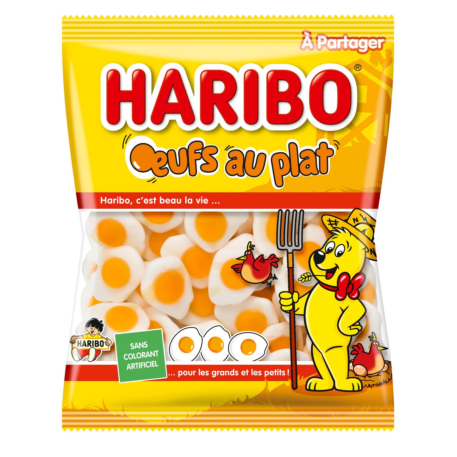 Tutti candi. Ingrédients : Sucre, sirop de glucose, gélatine, dextrose, humectant : sirop de sorbitol, acidifiant : acide citrique, concentrés de fruits et de plantes...