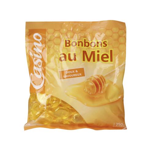 Bonbons au miel. Ingrédients : Sirop de glucose - sucre - miel 8,5%.traces de _fruits à coque_ et de _lait_.les mentions en _gras_ sont destinées...