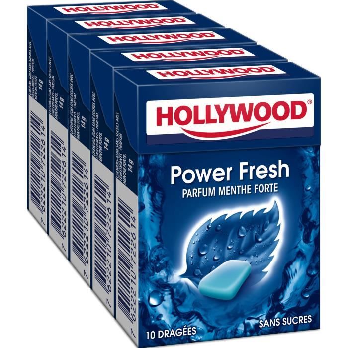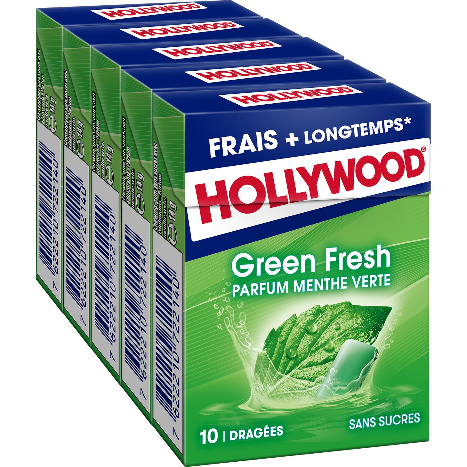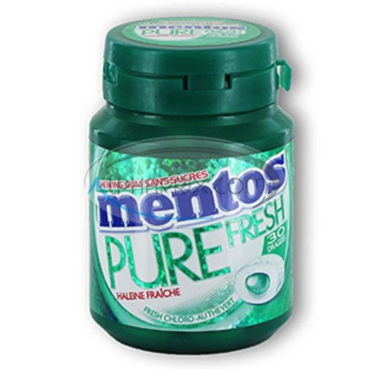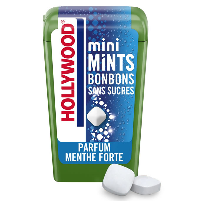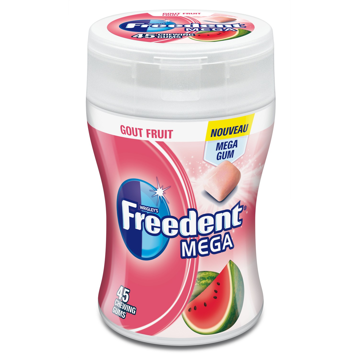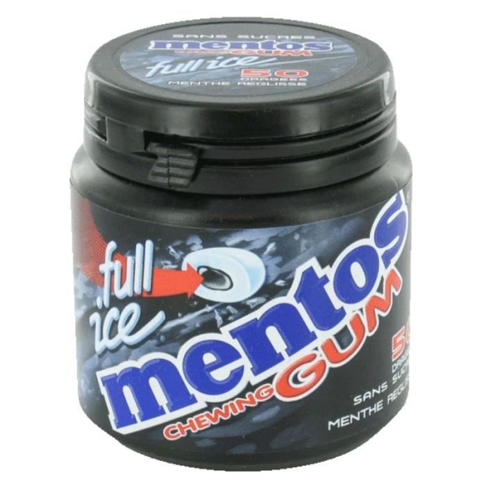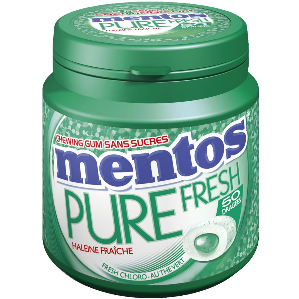 Chewing-gum avec édulcorants parfum chlorophylle. Ingrédients : Édulcorants (xylitol, sorbitol, mannitol, sirop de maltitol, aspartame, acésulfame-K), gomme base, stabilisant (glycérol), maltodextrine, arômes, fécule, émulsifiants (sucroesters...