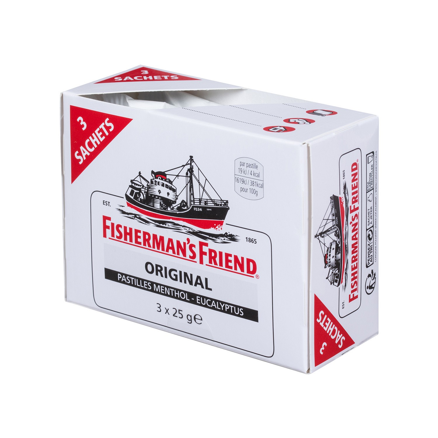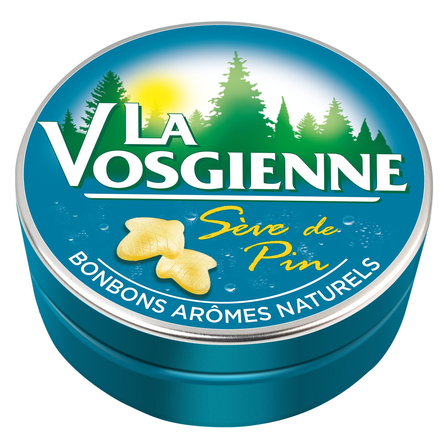 Confiseries. Ingrédients : Sucre, sirop de glucose, miel, menthol, huiles essentielles (eucalyptus, pin), mélasses, extrait de réglisse. Quantité : 125 g Marque : La Vosgienne,Mondelez...