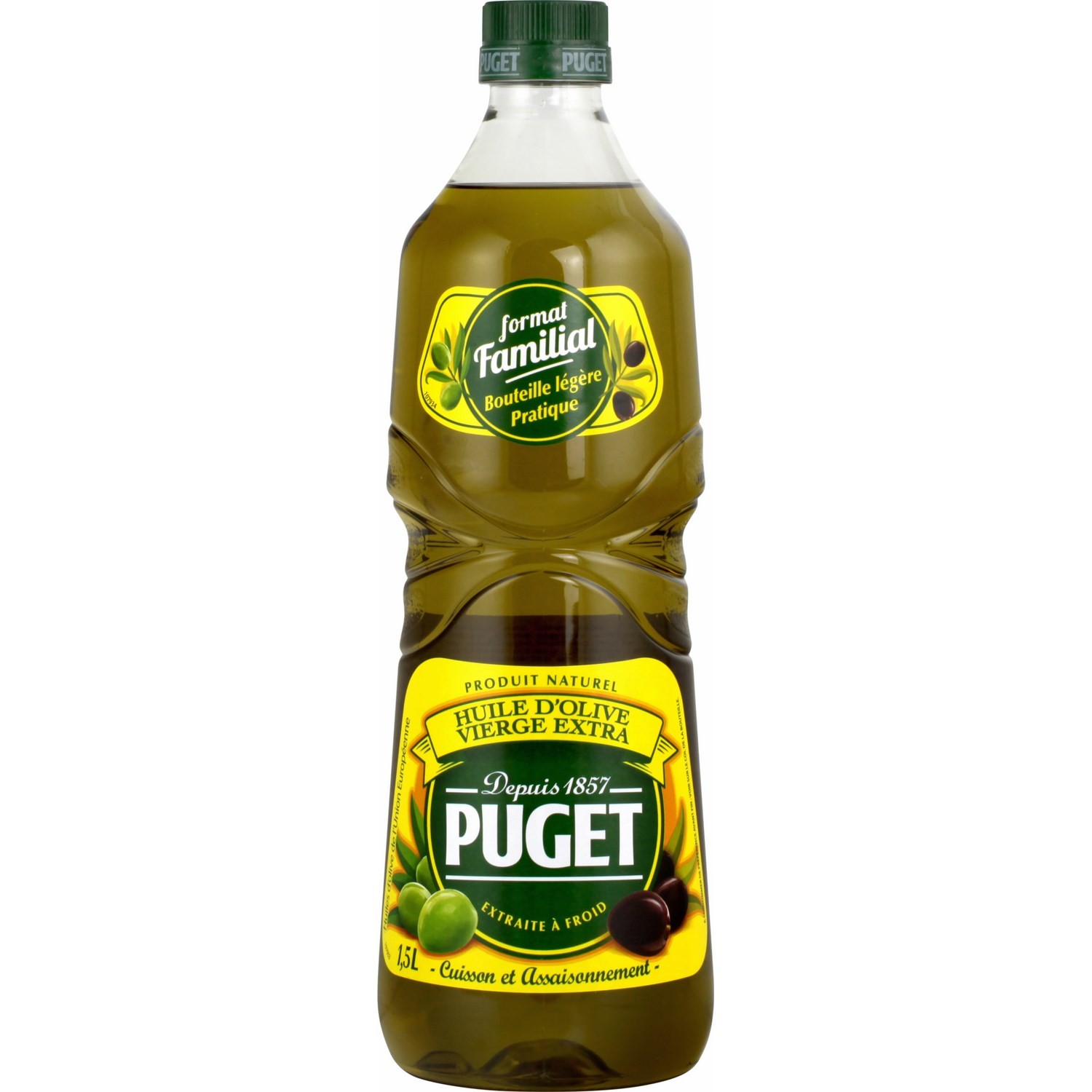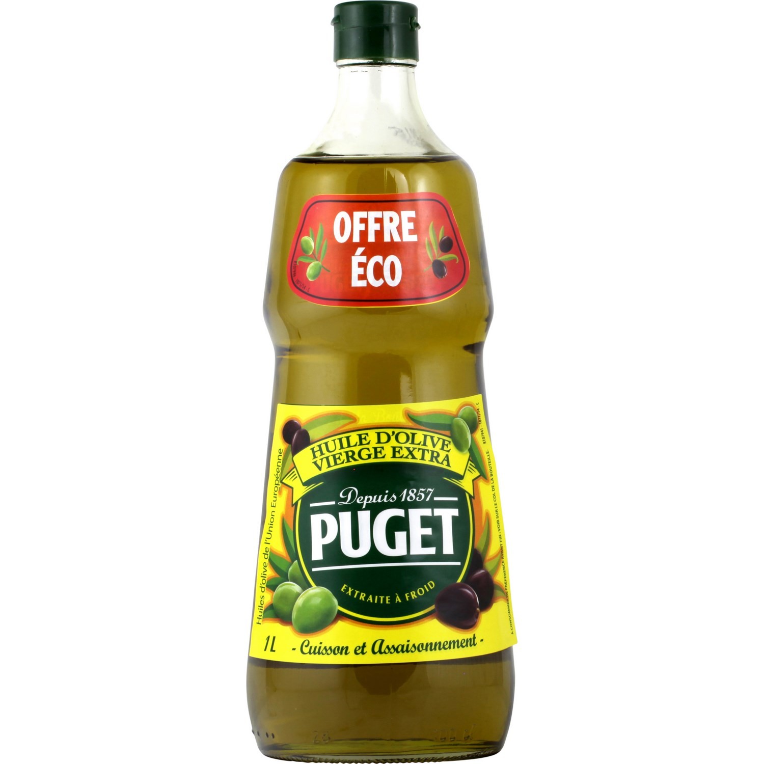 Huile d'olive vierge extra extraite à froid. Ingrédients : Huiles d'olive Quantité : 1 litre Marque : Puget Origine : union européenne
