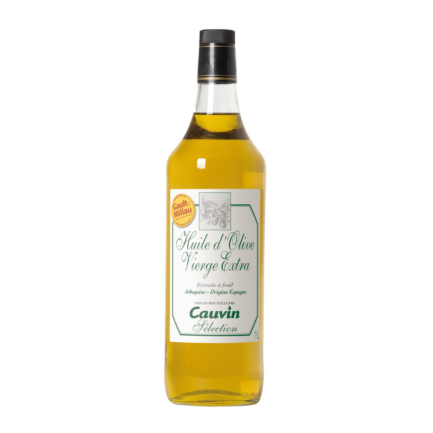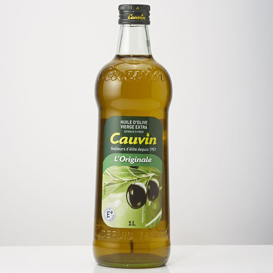 Huile D'olive Extra Vierge. Ingrédients : Huile d'olive de qualité supérieure obtenue directement des olives et uniquement par des procédés mécaniques. Marque : Cauvin