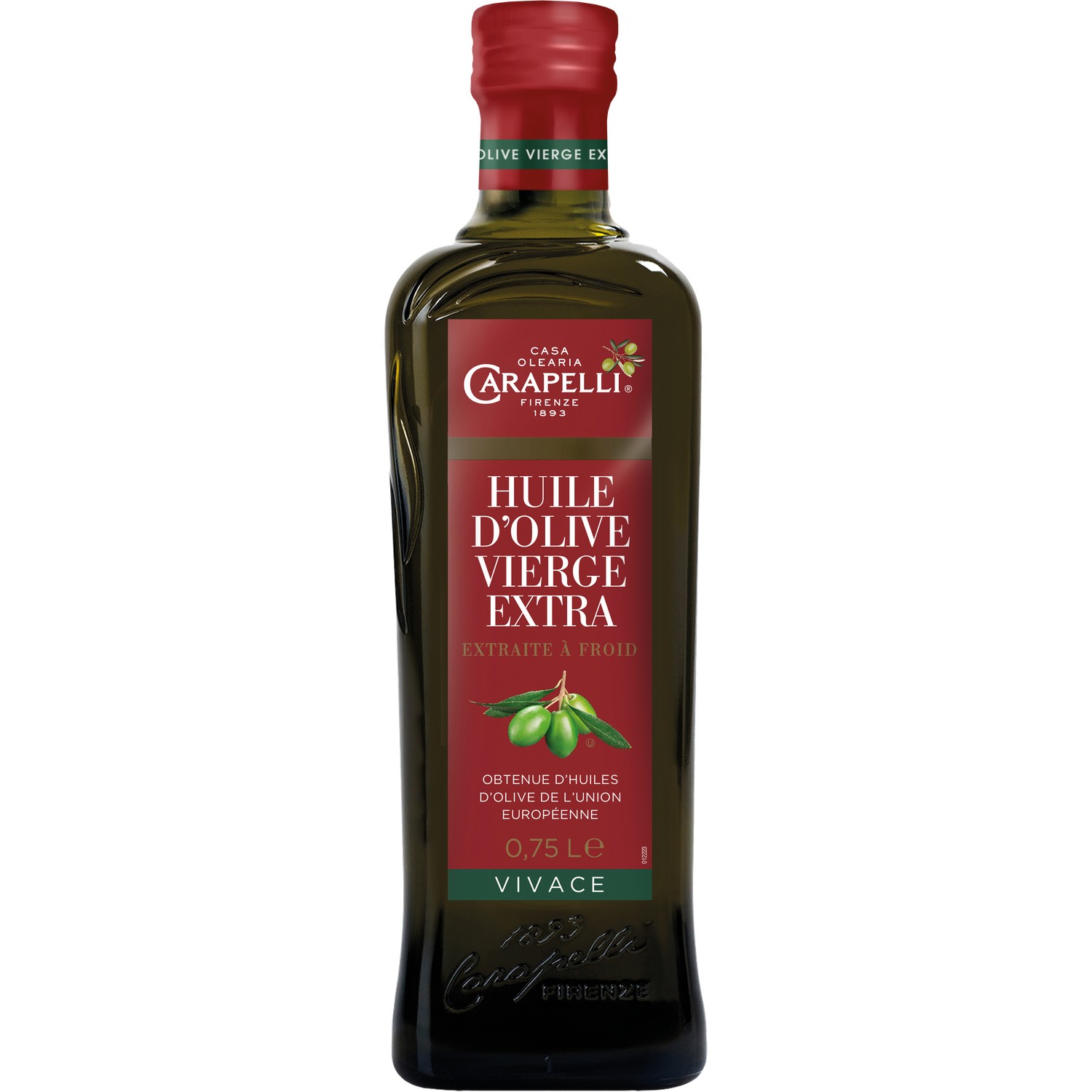 Vivace, huile d'olive vierge extra fruitée, première pression. Ingrédients : Huile d'olive vierge extra Quantité : 0.75 l Marque : Carapelli