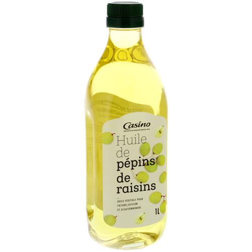 Huile de pépins de raisin. Ingrédients : huile de pépins de raisin Quantité : 1 l Marque : Casino