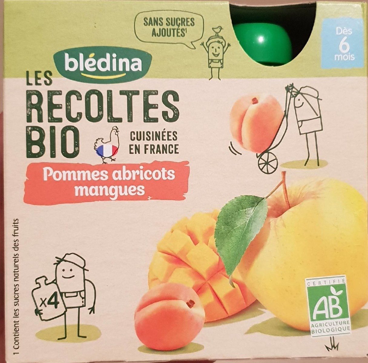 Aliment pour bébé - Purée de pommes et d'abricots sans sucres ajoutés*, sans gluten. *Conformément à la réglementation en vigueur. Contient des sucres naturellement présents....